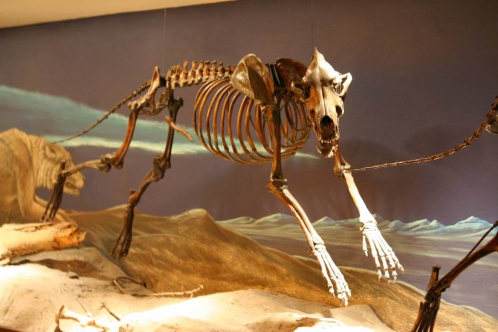 Restos fósiles del lobo terrible encontrados en los pozos de brea de La Brea en Los Ángeles, California, y otros sitios paleontológicos han proporcionado información valiosa sobre su anatomía y comportamiento. La especie se separó de la rama principal hace unos 4,5 millones de años. Posteriormente, unos 2,6 millones de años, se cruzaron con otras, incluidos los antepasados de los actuales lobos grises y coyotes. Cuando muchas de estas presas se extinguieron, probablemente en parte por la cacería humana, el lobo gigante pudo quedar amenazado y el lobo gris se extendió desde el norte de Canadá y Alaska para llenar el vacío ecológico.