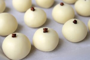 Para prepararlas se tamiza el azúcar glass mezclándola con la leche en polvo. Luego se le agrega la leche condensada poco a poco, mezclando con una cuchara de madera hasta que la masa espese. Posteriormente, se amasa con las manos hasta obtener una consistencia suave, brillante y que no se pegue. Si la masa está muy seca, se le añade un poco más de leche condensada. Si está muy pegajosa, se agrega más leche en polvo. Finalmente se hacen bolitas pequeñas y se les coloca un clavo de olor en el centro de cada una. Se dejan secar a temperatura ambiente por al menos 30 minutos antes de servir.