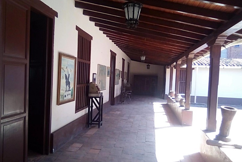 Los corredores internos, protegidos por cubiertas de madera con tejas de arcilla, se sostienen sobre una serie de columnas de madera, adornadas con ménsulas del mismo material, elementos que sirven de apoyo a una viga.